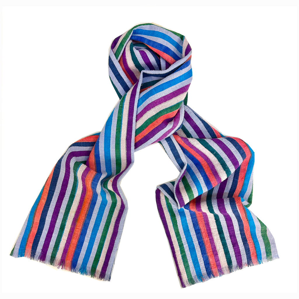 100% pure Tasar silk printed and made in England. A beautiful heavy textured silk, feels like silk, but looks like linen. These scarves come in one size only.