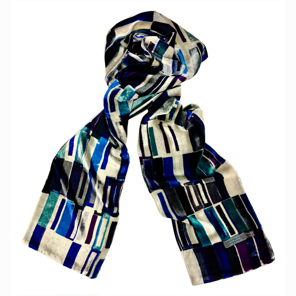 Hand printed silk velvet scarves (18% silk, 82% rayon) hand printed at my studio in London. The scarves are double velvet and available in three sizes: