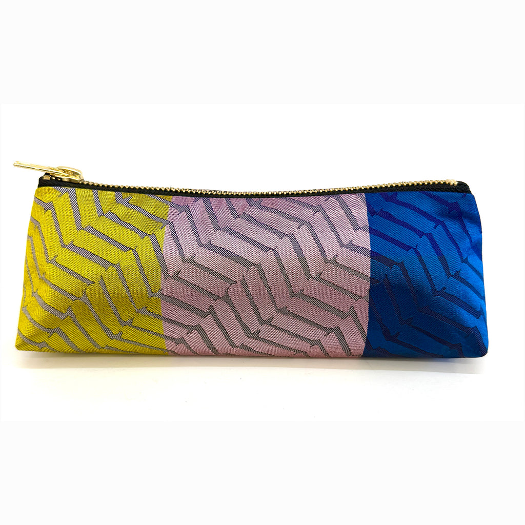 Box-cut case for make-up, pencils etc. Silk outer, cotton inner. 20.5 x 8 x 6 cms. £37