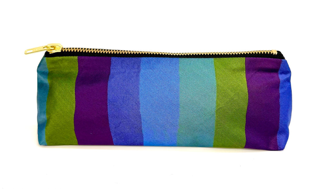 Box-cut case for make-up, pencils etc. Silk outer, cotton inner. 20.5 x 8 x 6 cms. £37