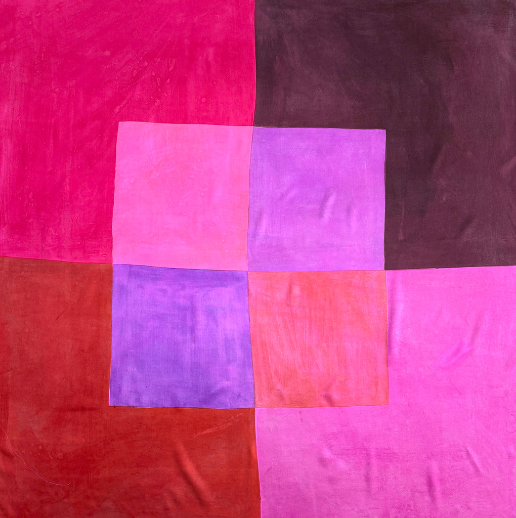 Hand-painted silk-satin square, each piece unique. Can be worn as a luxury square or framed as an art piece.